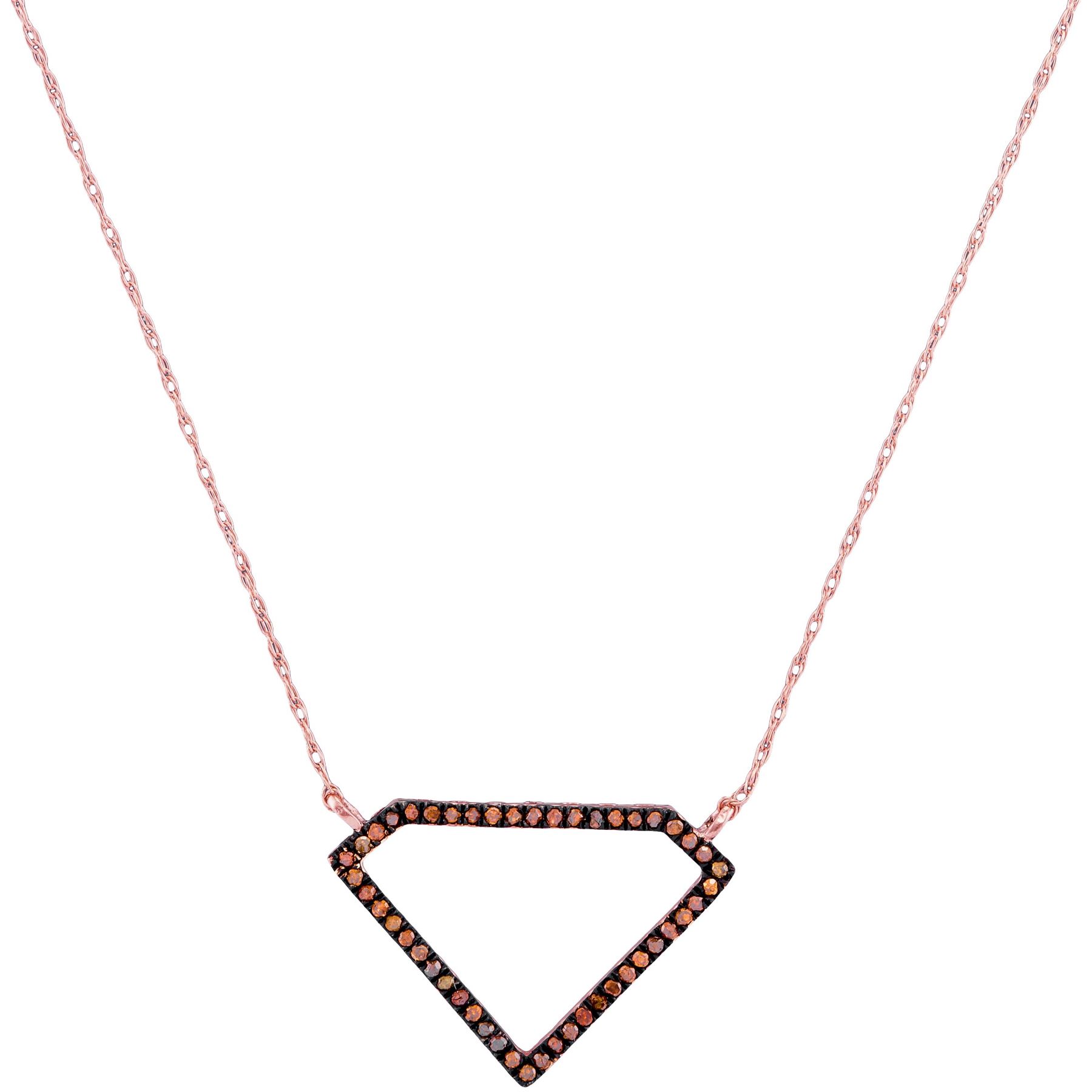 REF-18M2H- SKU: GD97662 ---- 0.12 CTW Red Color Diamond Gem Shape Fashion Necklace 10KT Rose Gold