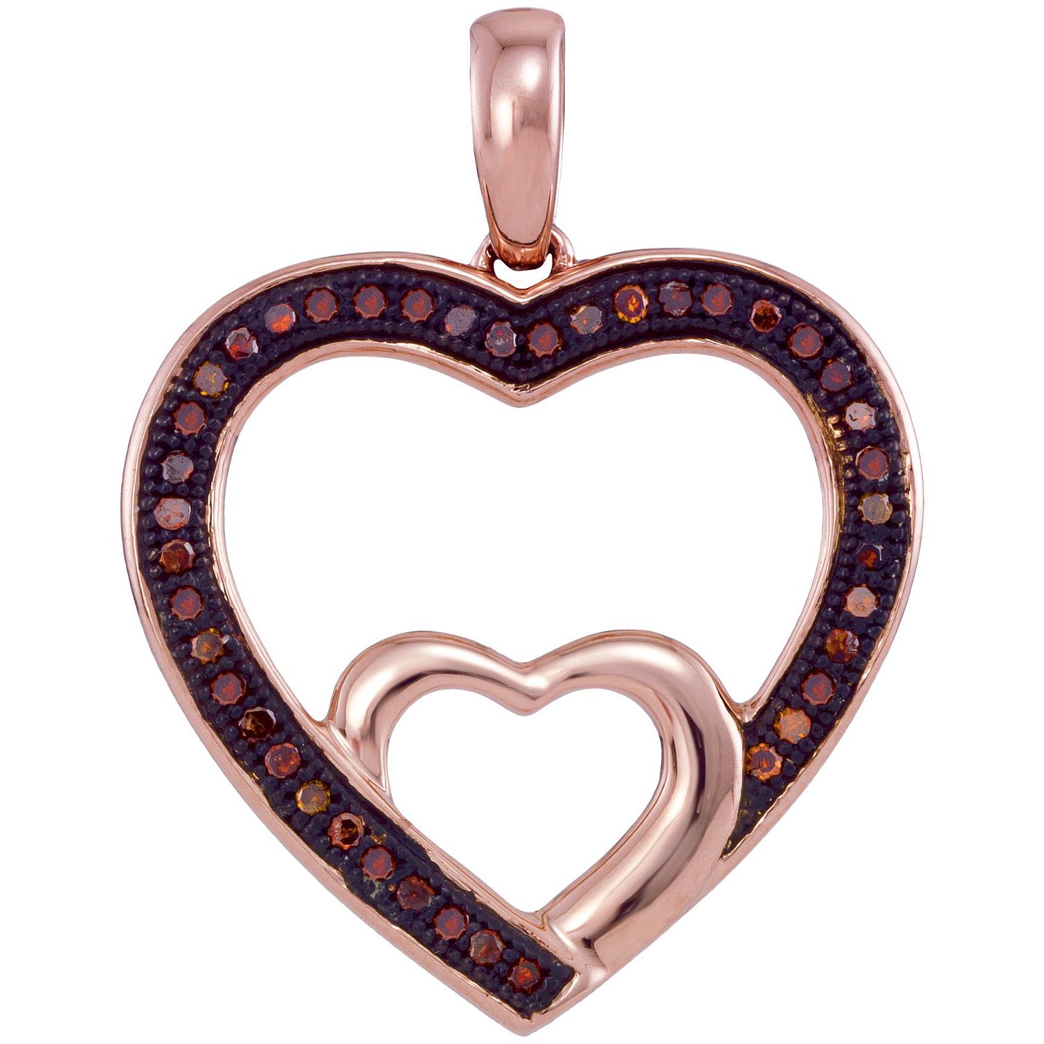REF-14H9M- SKU: GD93542 ---- 0.12 CTW Red Color Diamond Nested Double Heart Pendant 10KT Rose Gold