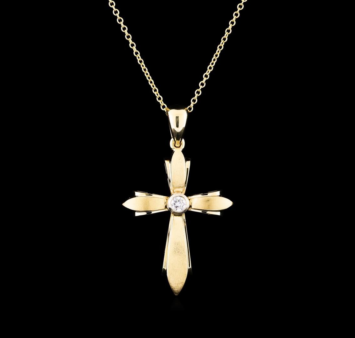 One cross pendant with chain featuring: 14KT yellow gold weighing 5.15 grams containing one diamond with a total weight of 0.12ct.