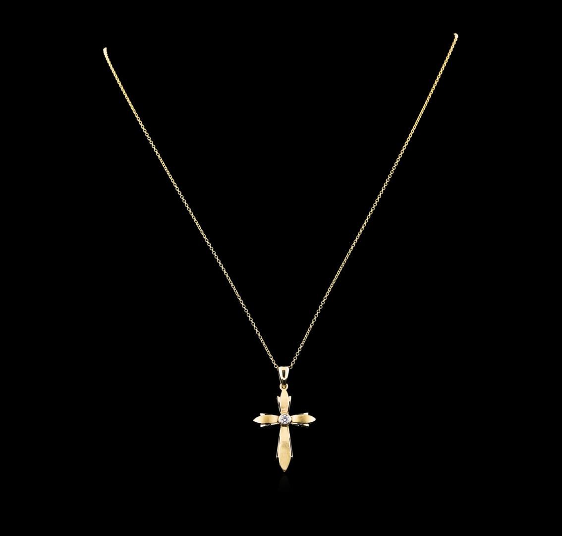 One cross pendant with chain featuring: 14KT yellow gold weighing 5.15 grams containing one diamond with a total weight of 0.12ct.