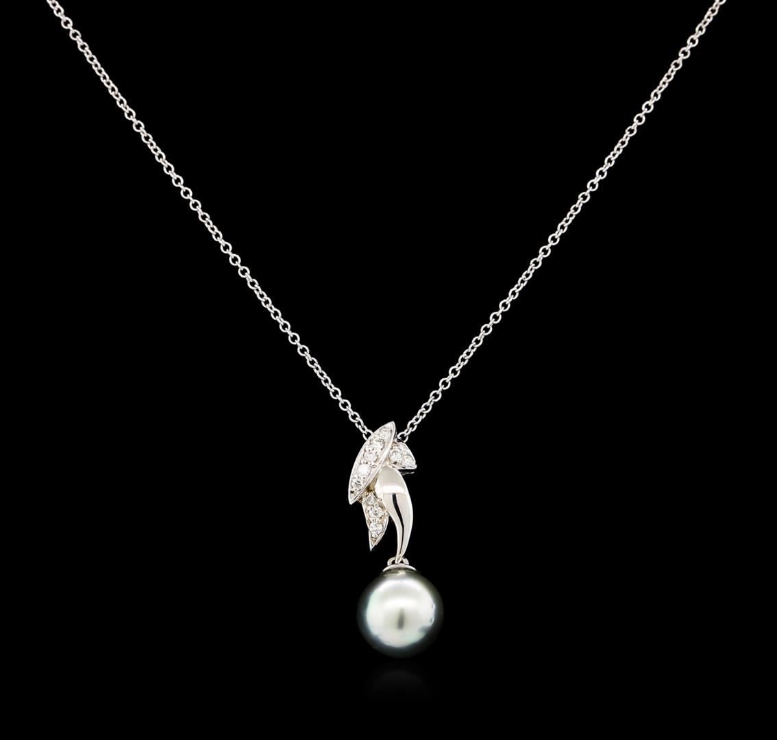 One pendant featuring: 14KT white gold weighing 1.45 grams containing one pearl and side diamonds with a total weight of 0.12ct.