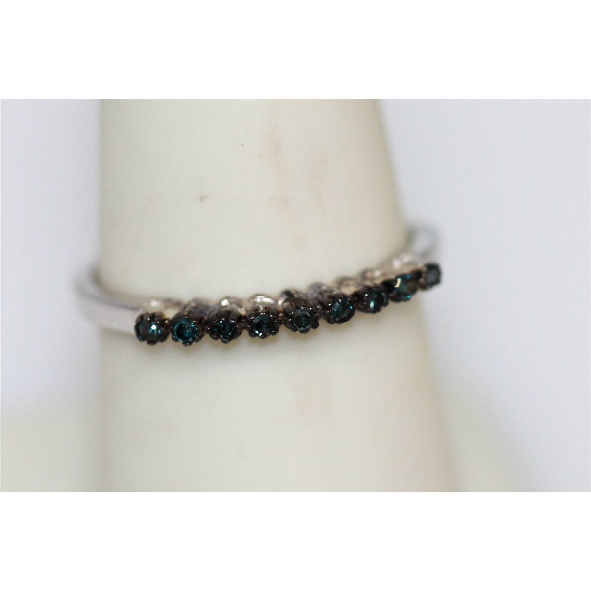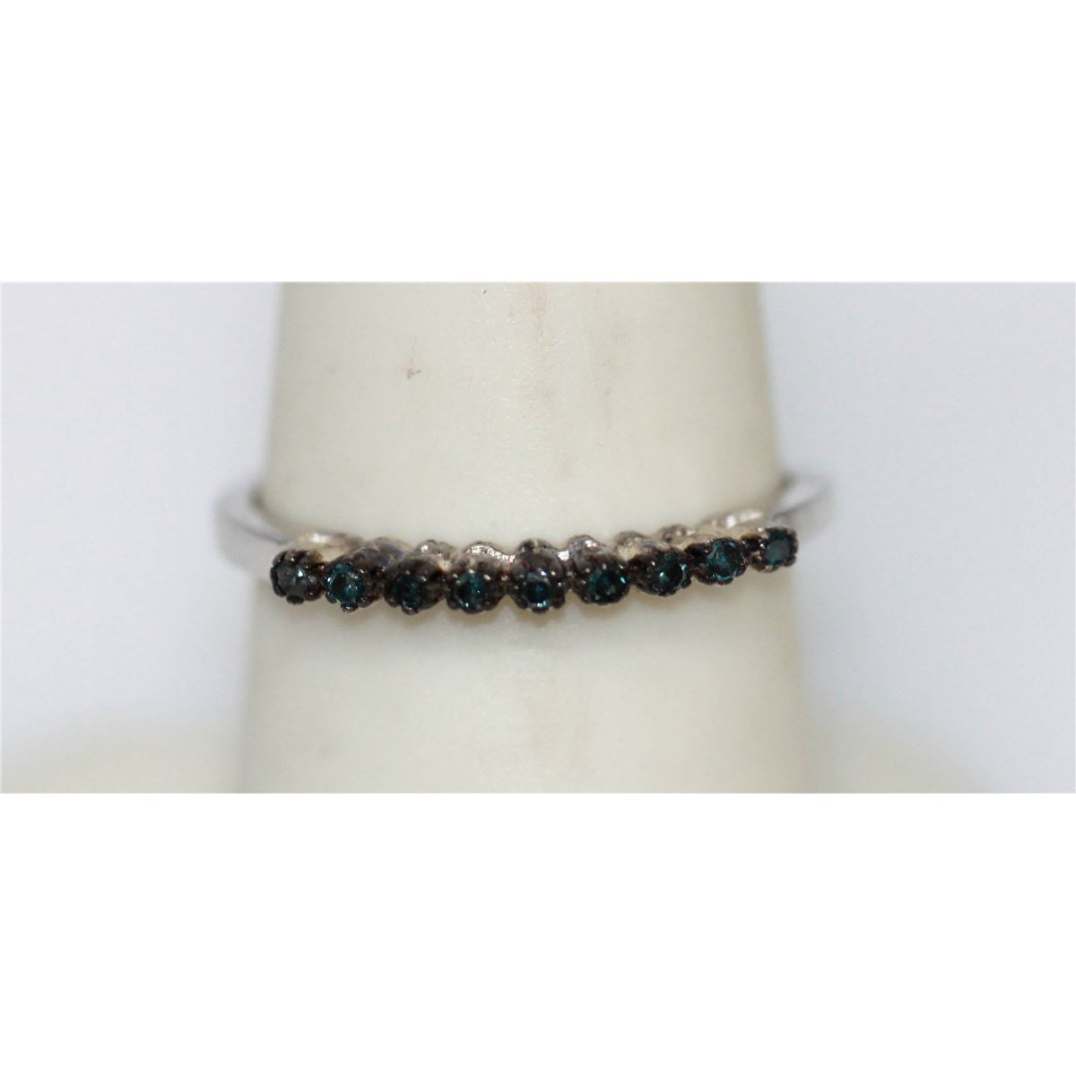 0.13 CTW BLUE DIAMOND RING .925 STERLING SILVER **|**|** 0.13 CTW BLUE DIAMOND RING .925 STERLING SILVER