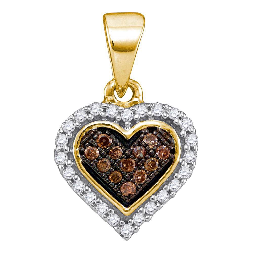 REF-8M9H- SKU: GD89093 ---- 0.13 CTW Cognac-brown Color Diamond Heart Cluster Pendant 10KT Yellow Gold