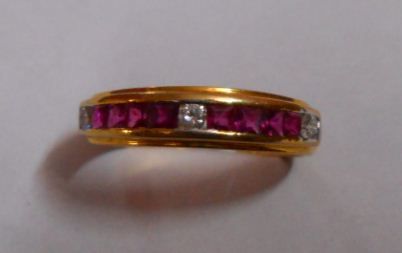 0.13 CTW Diamond,0.53 CTW Ruby Ring in 2.972g 18kt Yellow Gold