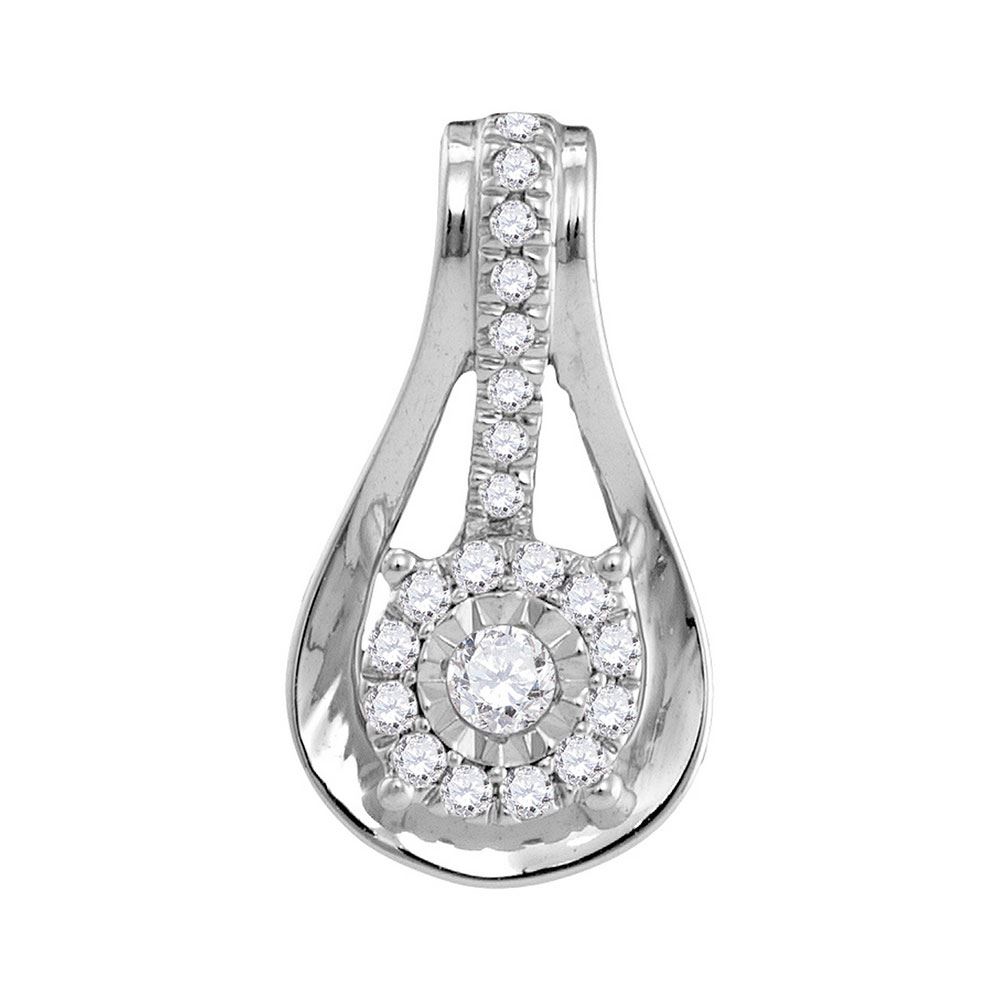 REF-12Y2X- SKU: GD105843 ---- 0.13 CTW Diamond Flower Teardrop Pendant 10KT White Gold
