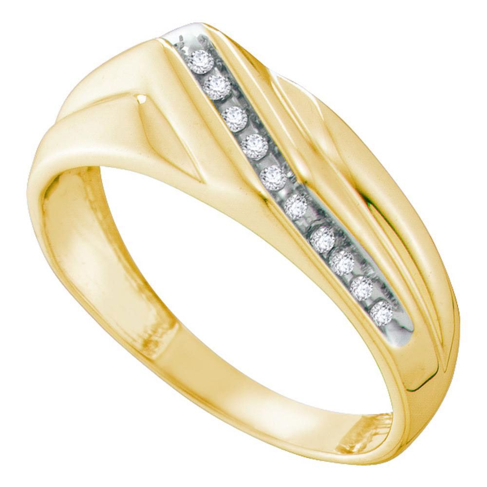REF-24M2H- SKU: GD58901 ---- 0.13 CTW Mens Diamond Diagonal Single Row Wedding Ring 10KT Yellow Gold
