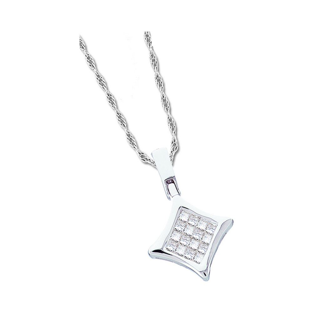 REF-16K4W- SKU: GD18778 ---- 0.13 CTW Princess Diamond Square Kite Cluster Pendant 14KT White Gold