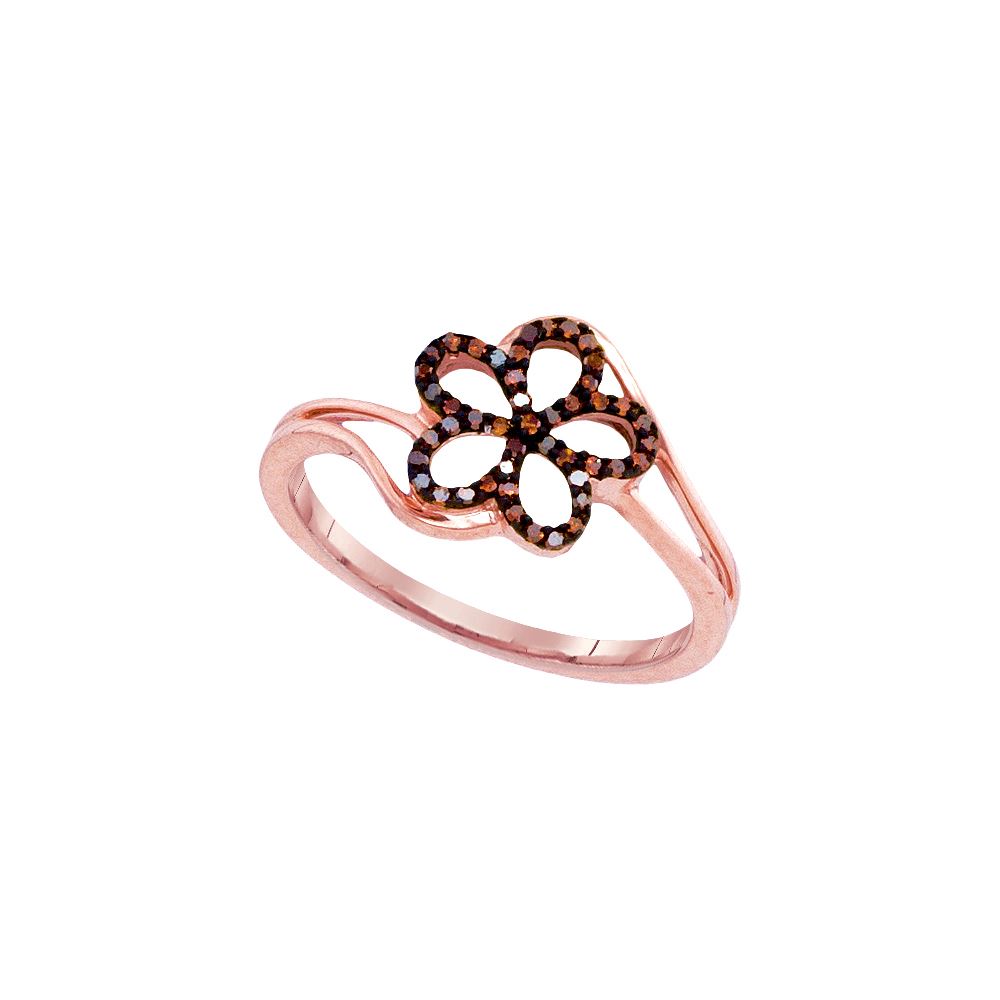 REF-21K9W ---- 0.13 CTW Red Colored Diamond Flower Floral Ring 10K Rose Gold - SKU: GD93263