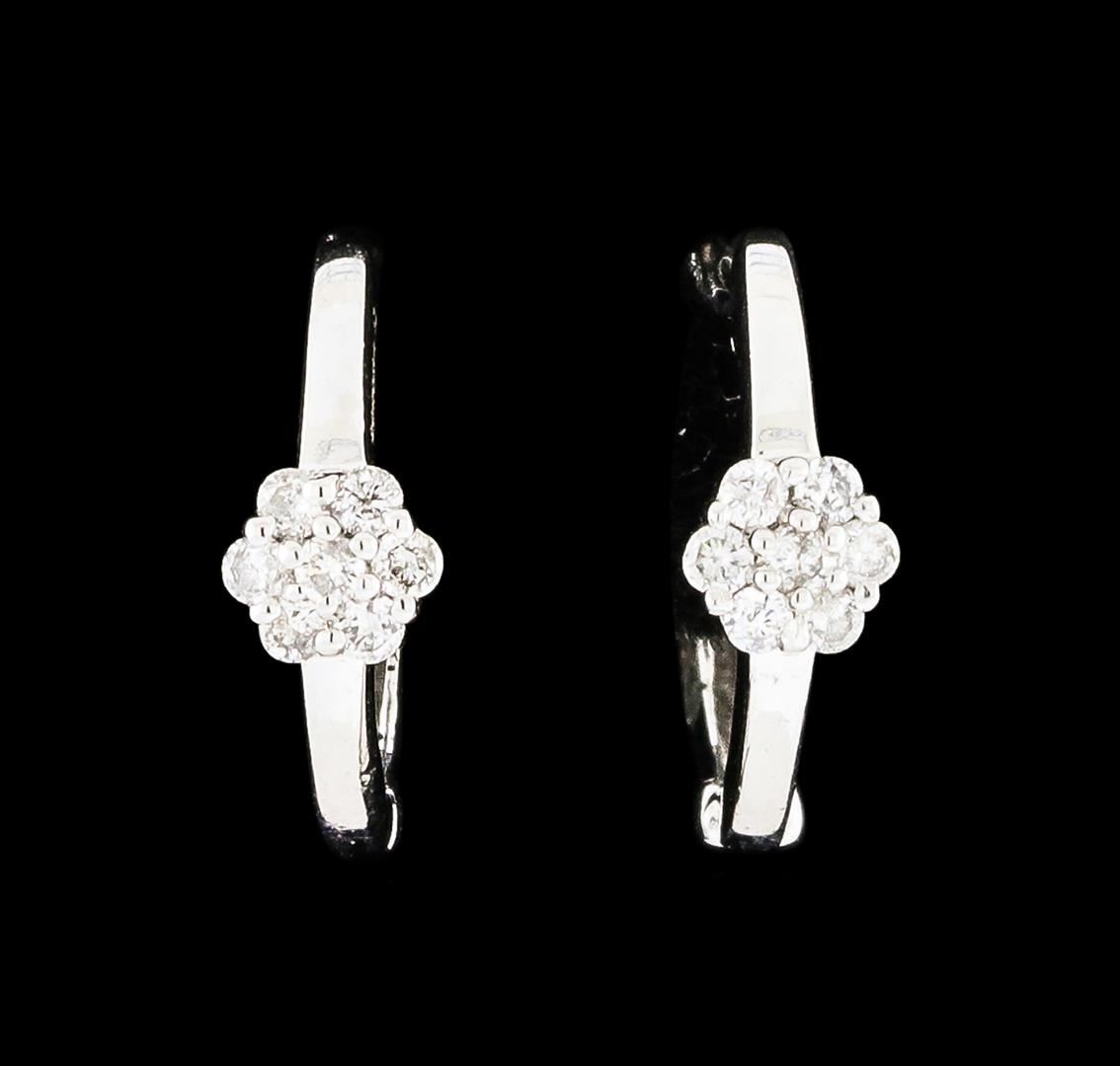 One pair of Diamond Hoop Earrings featuring: 14KT White Gold with a total weight of 1.24 grams and diamonds with a total weight of 0.13ctw.