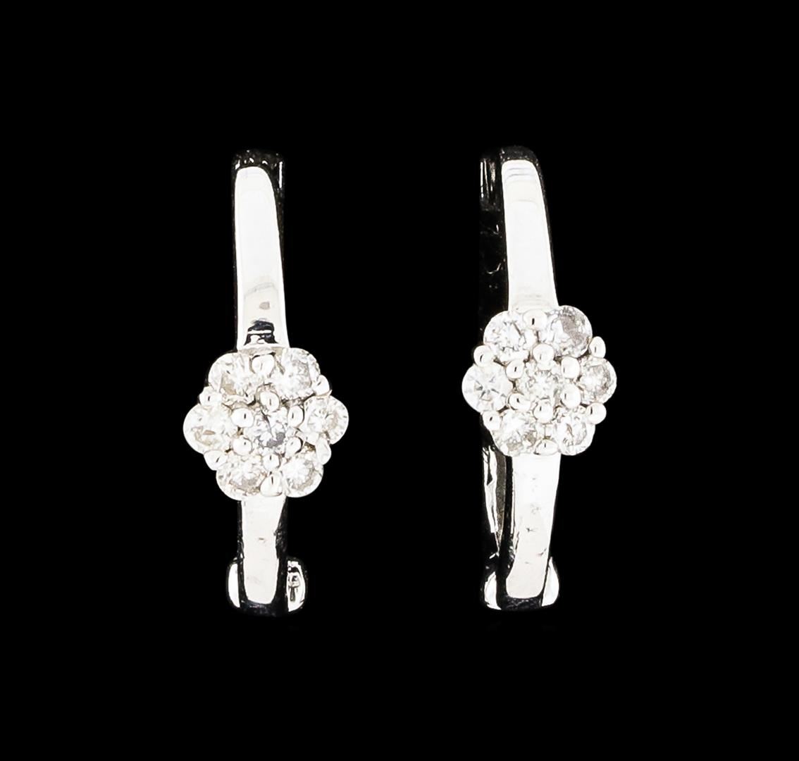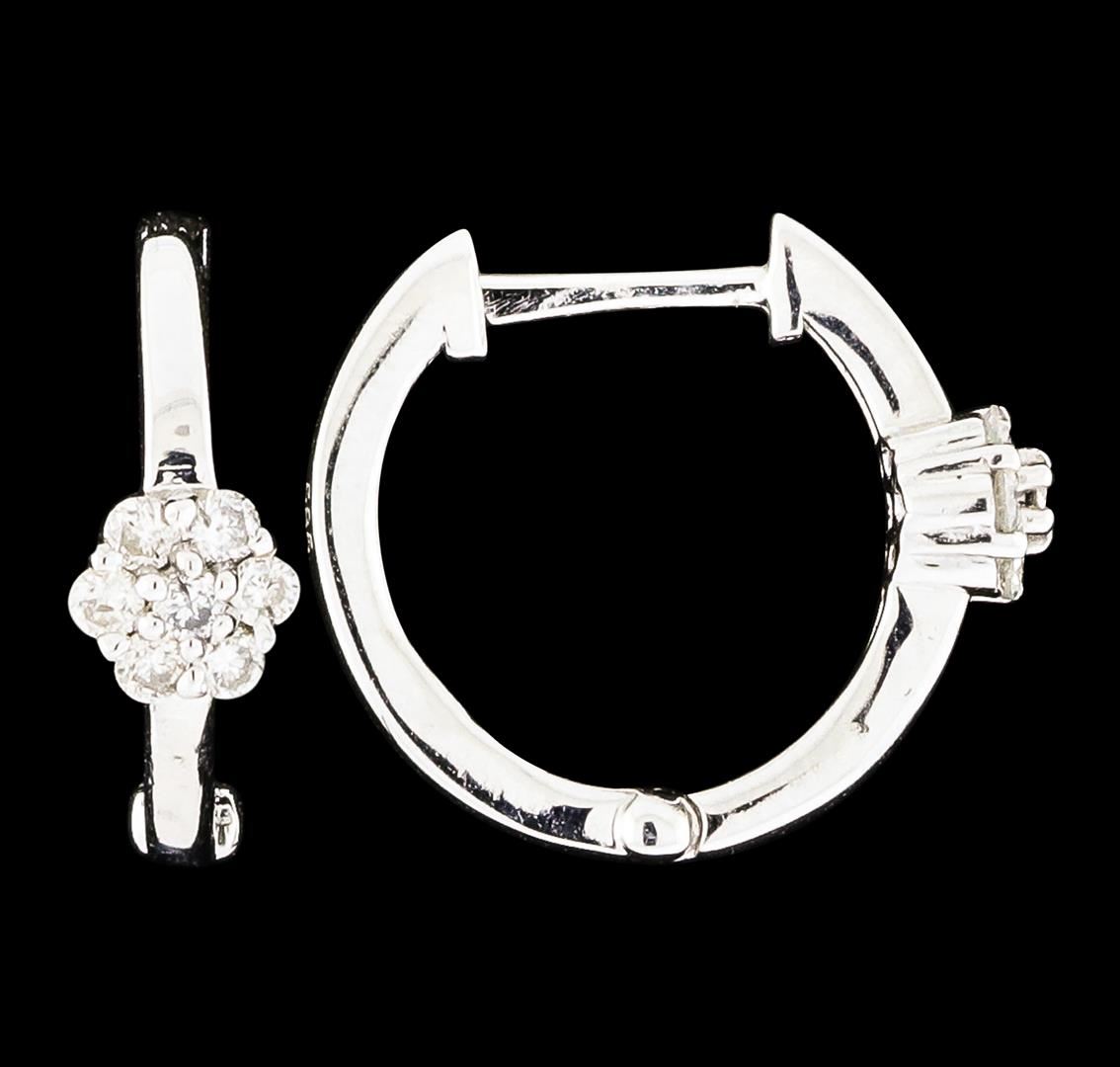 One pair of Diamond Hoop Earrings featuring: 14KT White Gold with a total weight of 1.30 grams and diamonds with a total weight of 0.13ctw.