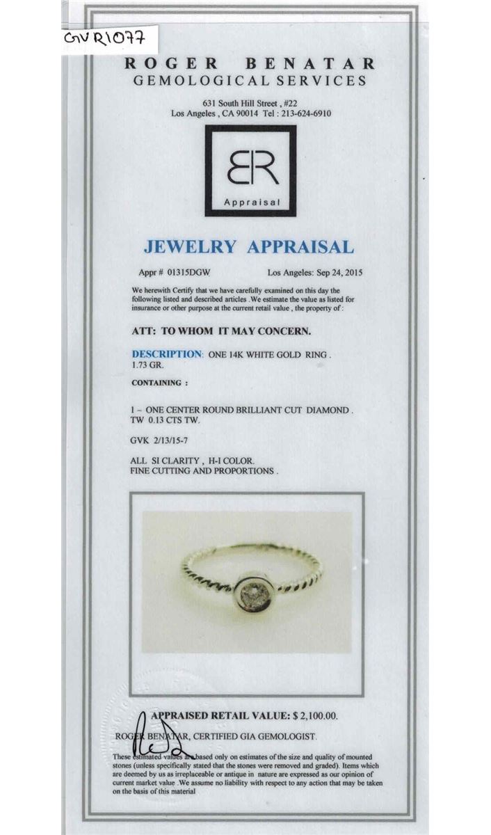 14K WHITE GOLD NATURAL DIAMOND RING:1.73 GRAMS/DIAMOND:0.13CT//#GVR1077