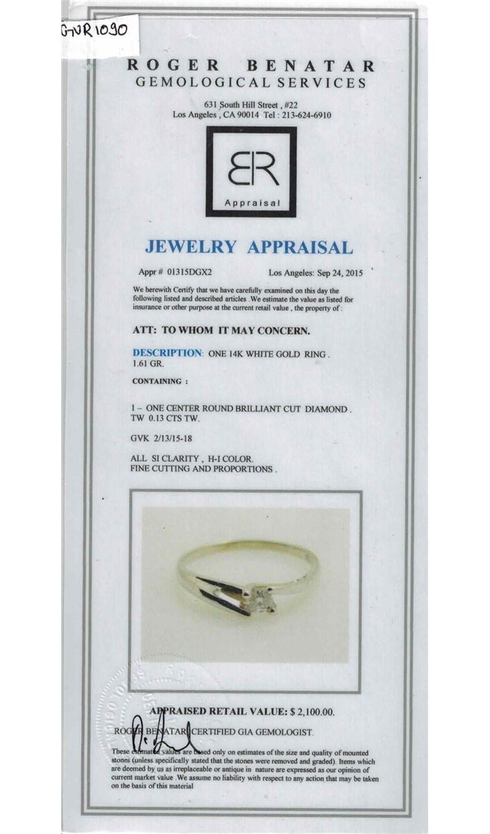 14K WHITE GOLD NATURAL DIAMOND RING:1.61GRAMS/DIMAOND:0.13CT//#GVR1090