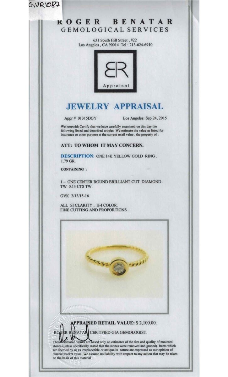 14K YELLOW GOLD NATURAL DIAMOND RING:1.79 GRAMS/DIAMOND:0.13CT//#GVR1087