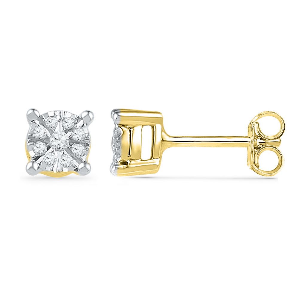 REF-24W2K- SKU: GD101909 ---- 0.14 CTW Diamond Cluster Screwback Earrings 10KT Yellow Gold