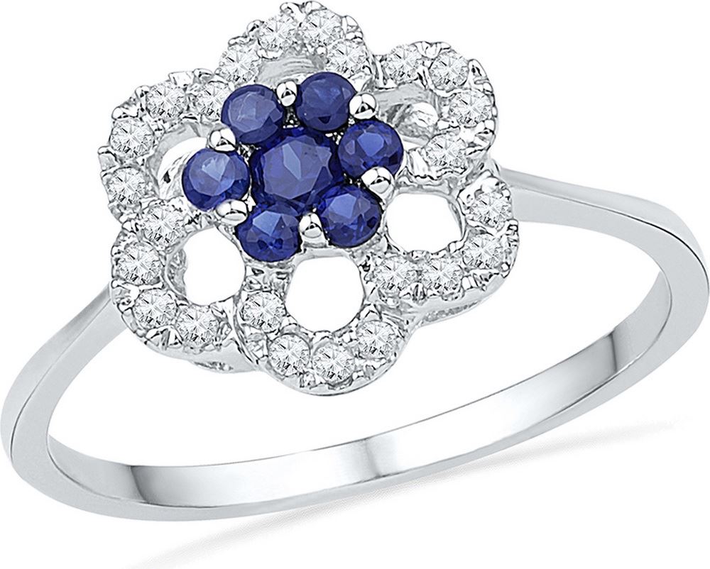 REF-21M9A ---- 0.14 CTW Lab-Created Blue Sapphire & Diamond Cluster Ring 10K White Gold - SKU: GD100136