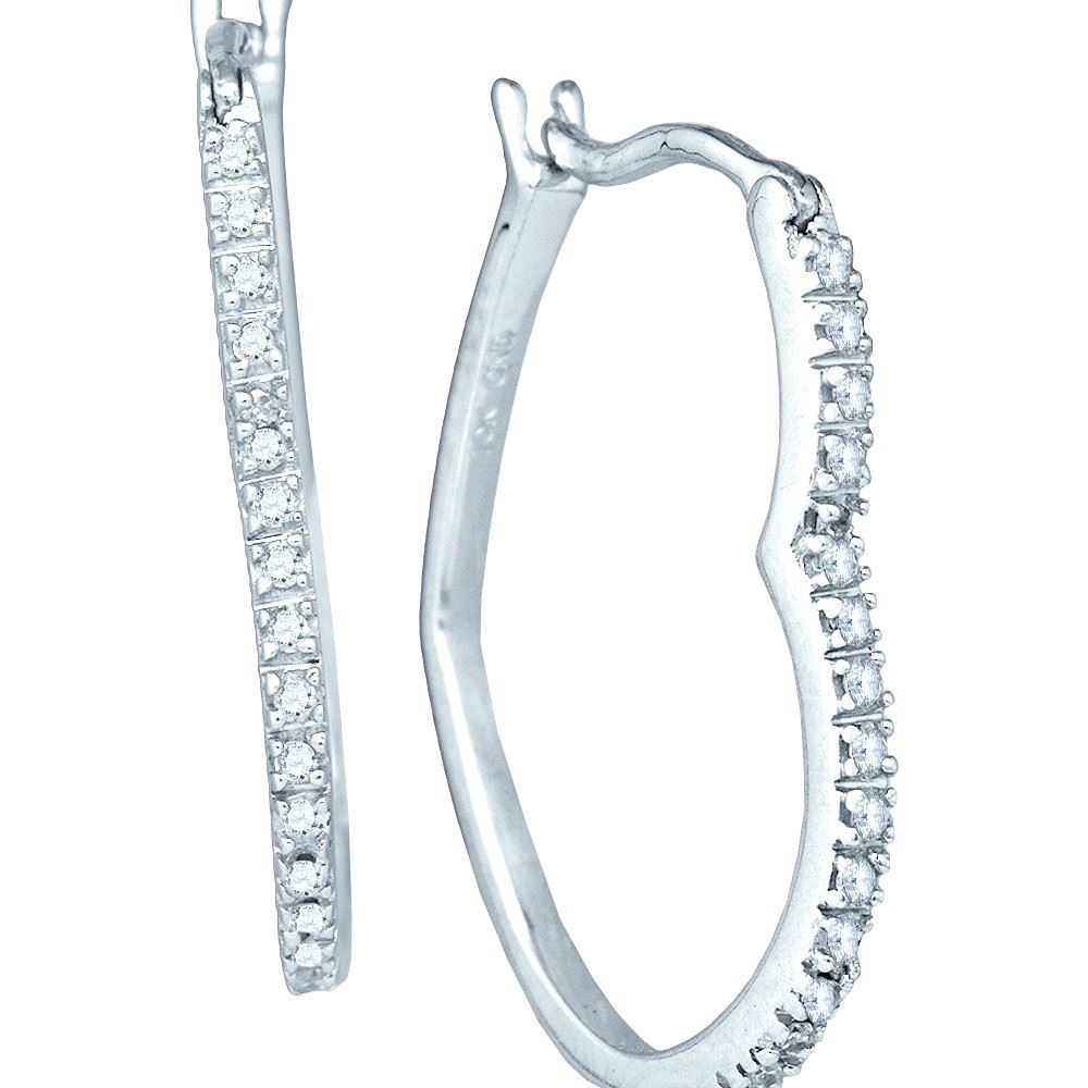 REF-16V2T ---- 0.14 CTW Natural Diamond Heart Hoop Earrings 10K White Gold - SKU: GD60376