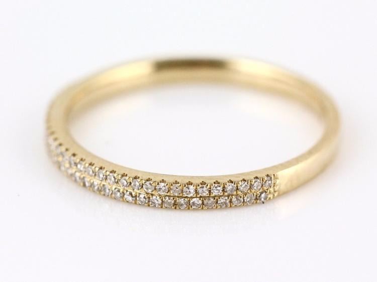 |**Total Carat Weight:0.14|**Clarity:SI2-SI3|**Cut:Verry Good|**Setting: Micro Pave Set |**Main Stone:|**MAIN Stone Treatment:Not Enhanced|**Main Stone Color:|**Main Stone Color:Round|**Theme:|**Length Inches:|**Ring Size:|**Style:Stackable Band|**Metal Purity:14k|**Metal:Yellow Gold|**Gold Weight:1.82g|**Dimension:|**Diamond Color:G-H|**Sizable:|**Sizable:A brand-new, unused, and unworn item (including handmade items) in the original packaging (such as the original box or bag) and/or with the original tags attached|**Remarks: Colorless Diamonds, With no visible inclusions to the unaided eye. 0.14ct - 59pcs - 0.7mm Round Clear Diamond (Not Enhanced) SETTING: Micro Pave Set BAND WIDTH: 2mm Approx. WEIGHT OF GOLD: 1.82g 14K Solid Yellow Gold - ("14K" Metal Stamp)
