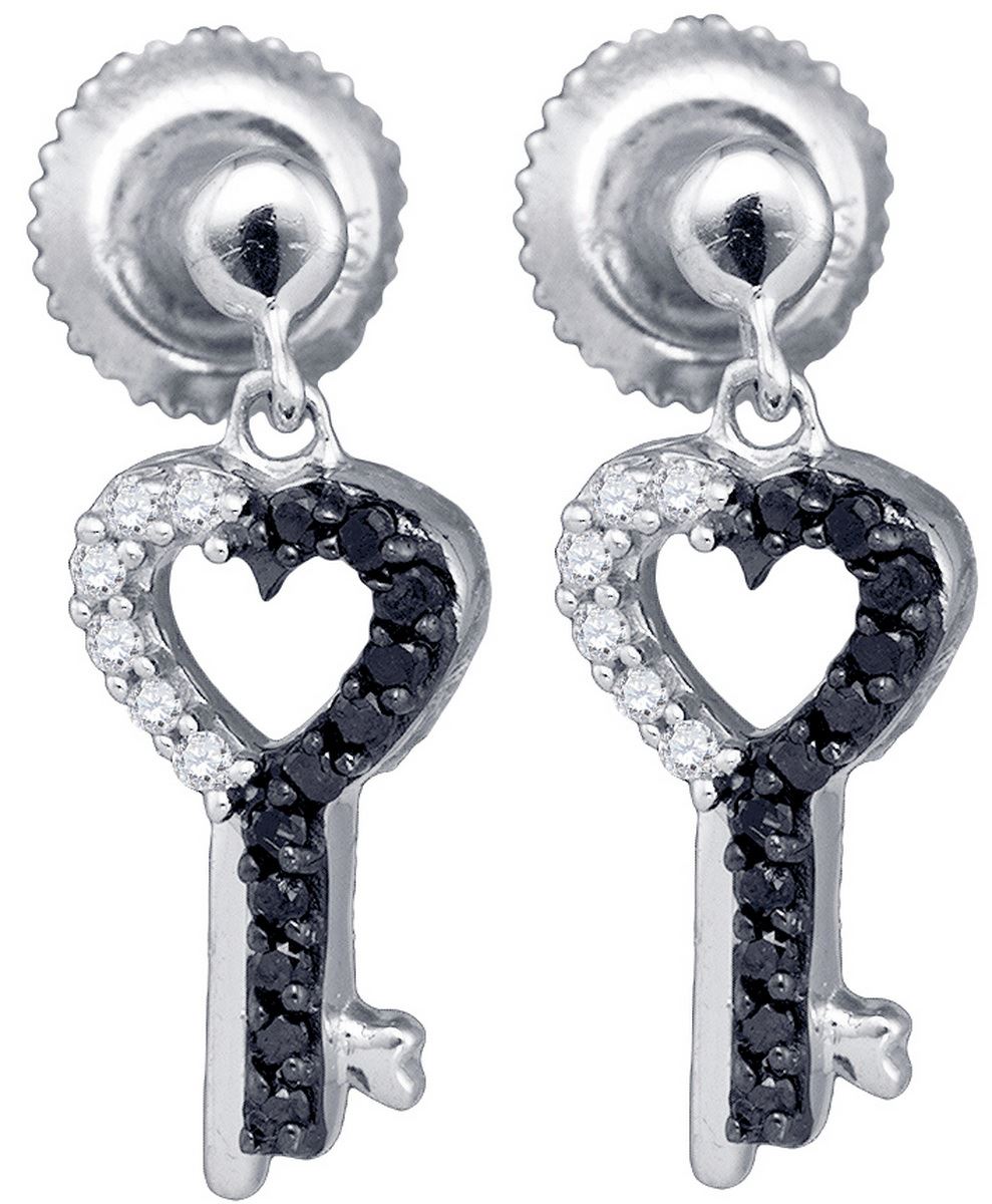 REF-19K9W ---- 0.15 CTW Black Colored Diamond Small Dainty Key Screwback Stud Dangle Earrings 10K White Gold - SKU: GD60160