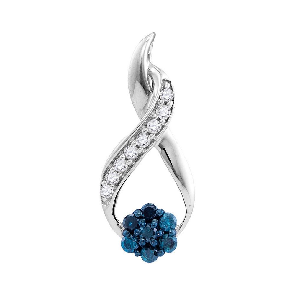REF-8W2K- SKU: GD110691 ---- 0.15 CTW Blue Color Diamond Cluster Pendant 10KT White Gold