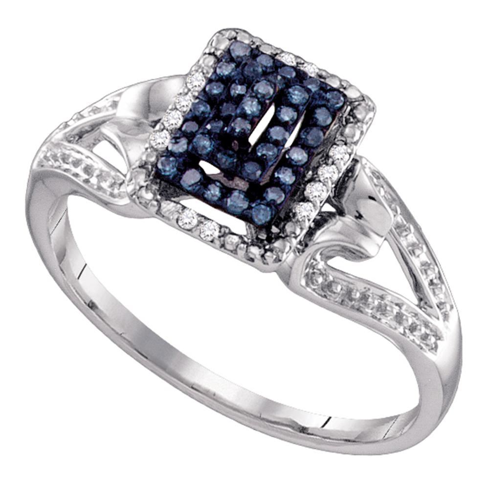 REF-18M2H- SKU: GD65971 ---- 0.15 CTW Blue Color Diamond Cluster Ring 10KT White Gold