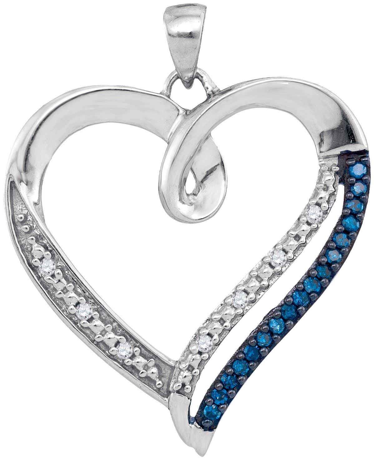 REF-19M4H- SKU: GD94849 ---- 0.15 CTW Blue Color Diamond Heart Outline Pendant 10KT White Gold