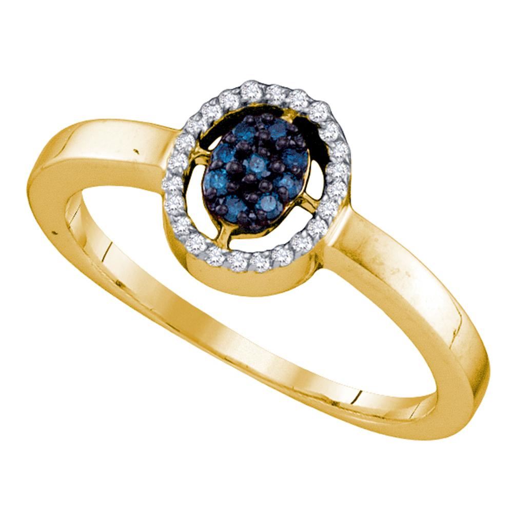 REF-13M4H- SKU: GD65269 ---- 0.15 CTW Blue Color Diamond Oval Cluster Ring 10KT Yellow Gold