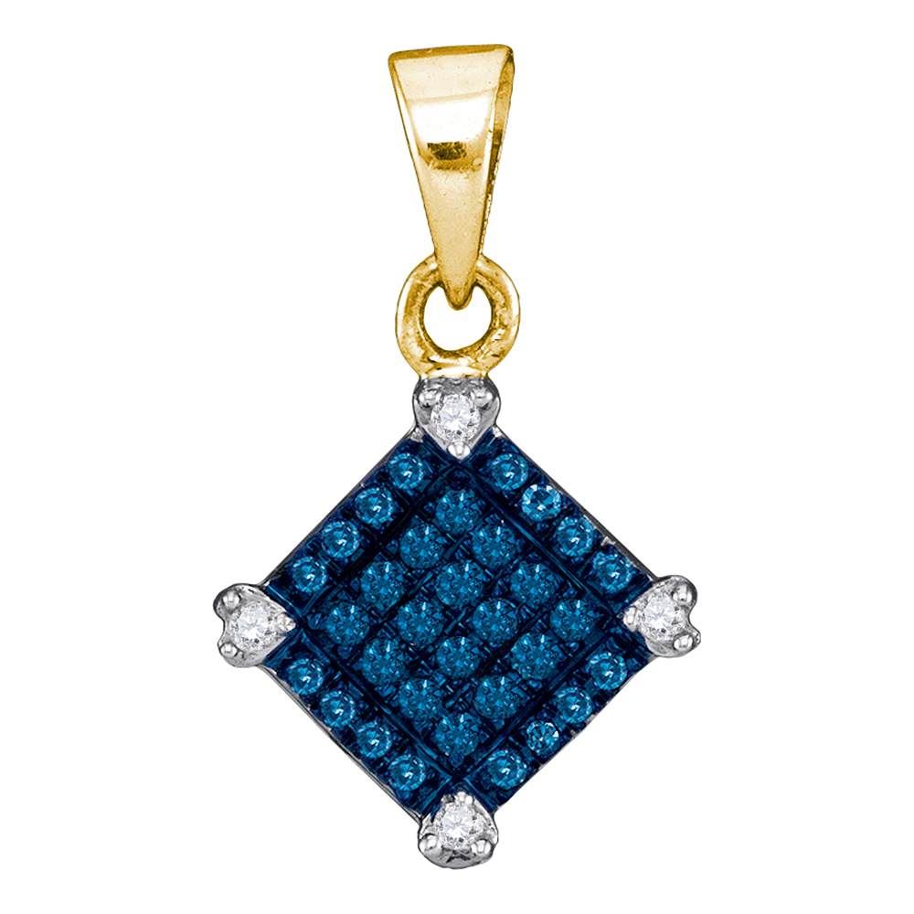 REF-8W9K- SKU: GD88704 ---- 0.15 CTW Blue Color Diamond Square Pendant 10KT Yellow Gold