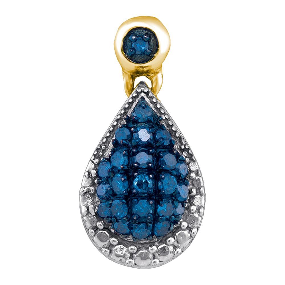 REF-12F2N- SKU: GD85878 ---- 0.15 CTW Blue Color Diamond Teardrop Cluster Pendant 10KT Yellow Gold