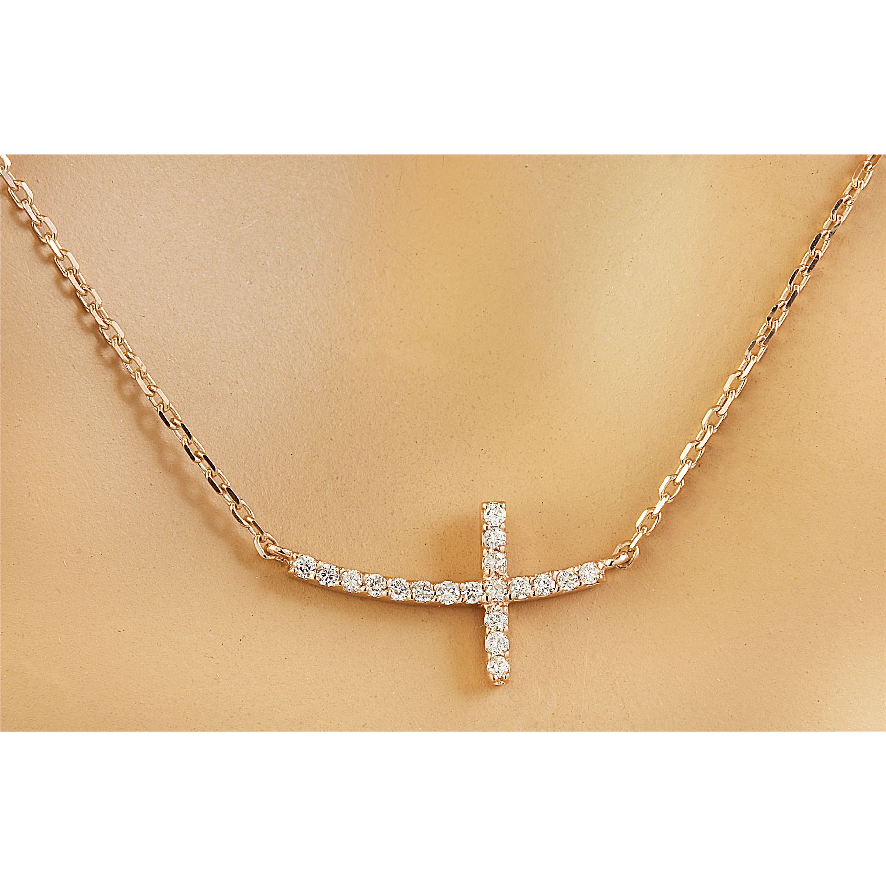0.15 CTW Diamond 18K Rose Gold Cross Bar Necklace