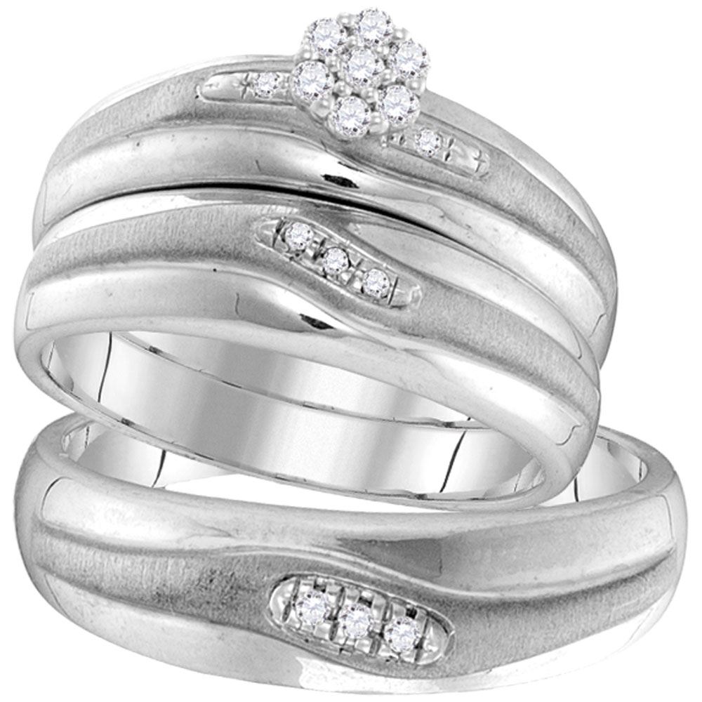 0.15 CTW Diamond Cluster Matching Bridal Wedding Ring 10kt White Gold - SKU: GD105910
