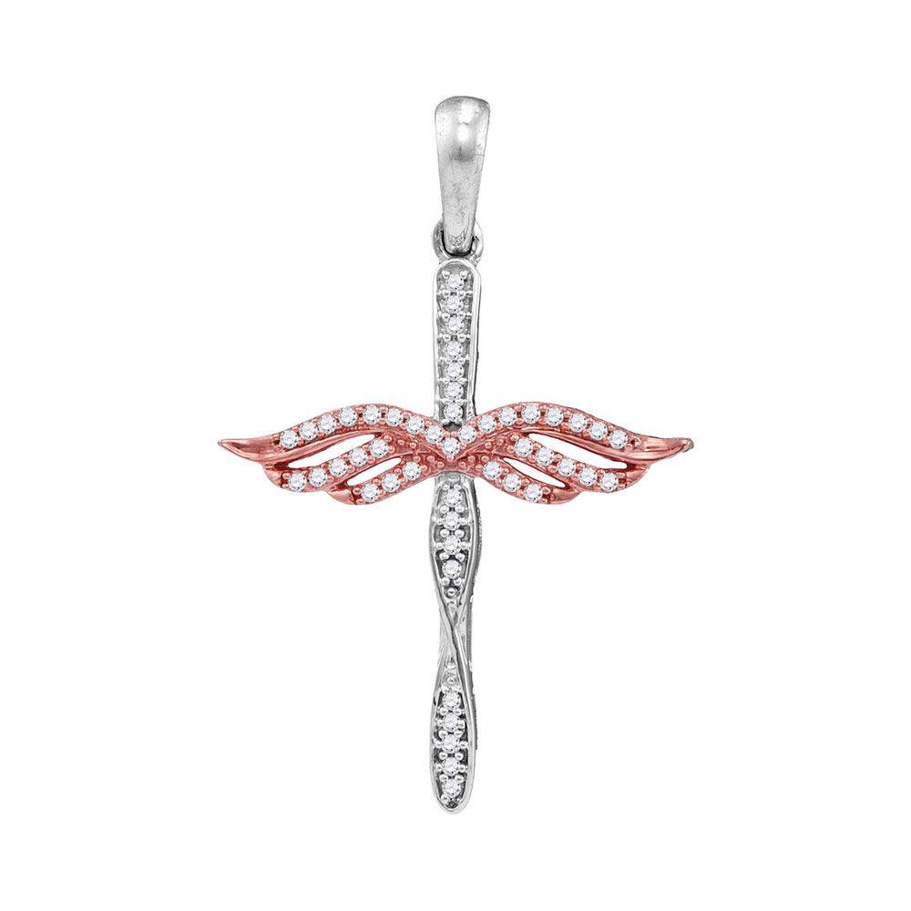 REF-13M4H- SKU: GD108186 ---- 0.15 CTW Diamond Cross Wings Pendant 10KT Two-tone Gold