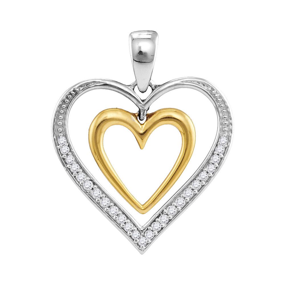 REF-18H2M- SKU: GD109744 ---- 0.15 CTW Diamond Dangling Nested Heart Love Pendant 10KT Two-tone Gold