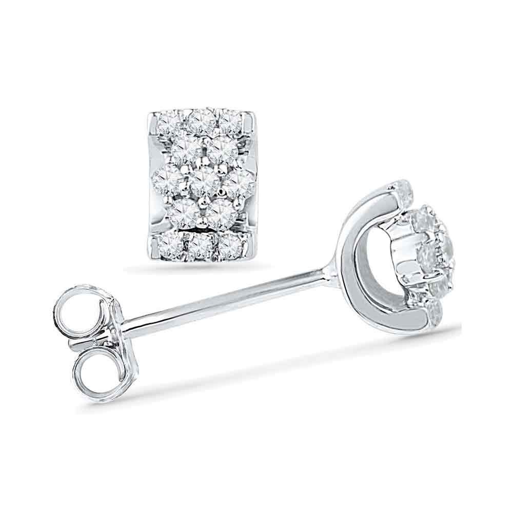 0.15 CTW Diamond Flower Cluster Screwback Earrings 10kt White Gold - SKU: GD101760