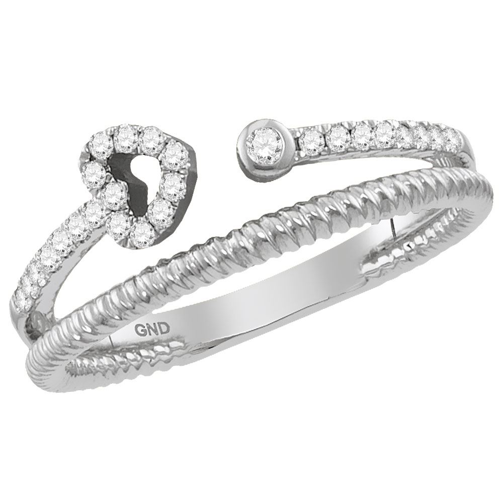 REF-20H9M- SKU: GD118223 ---- 0.15 CTW Diamond Heart Bisected Stackable Ring 10KT White Gold