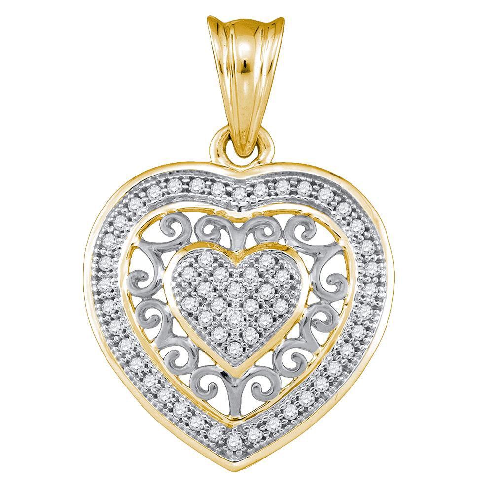 REF-19Y4X- SKU: GD80184 ---- 0.15 CTW Diamond Openwork Heart Cluster Pendant 10KT Yellow Gold