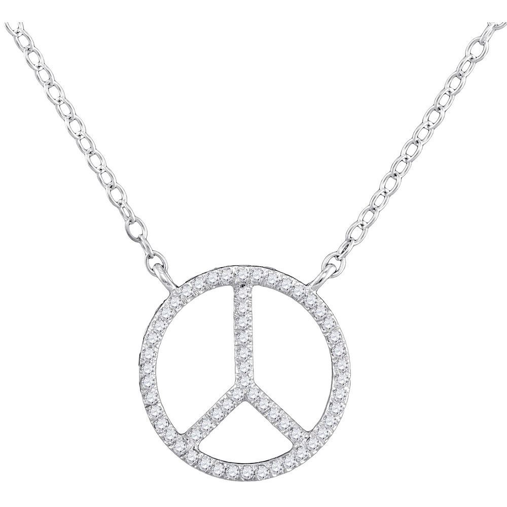 REF-18Y2X- SKU: GD97830 ---- 0.15 CTW Diamond Peace Sign Circle Pendant 10KT White Gold