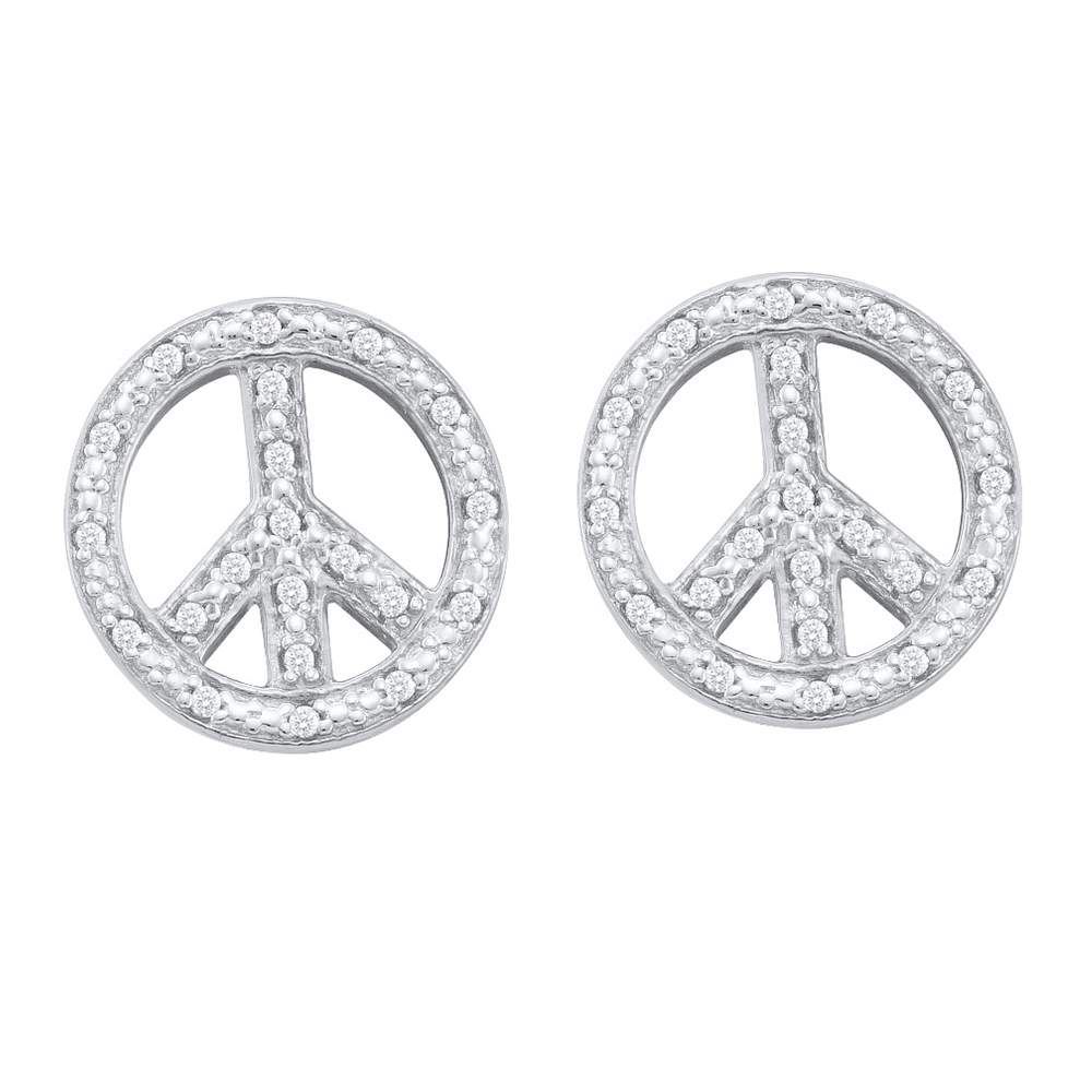 REF-22H4M- SKU: GD55548 ---- 0.15 CTW Diamond Peace Sign Earrings 10KT White Gold