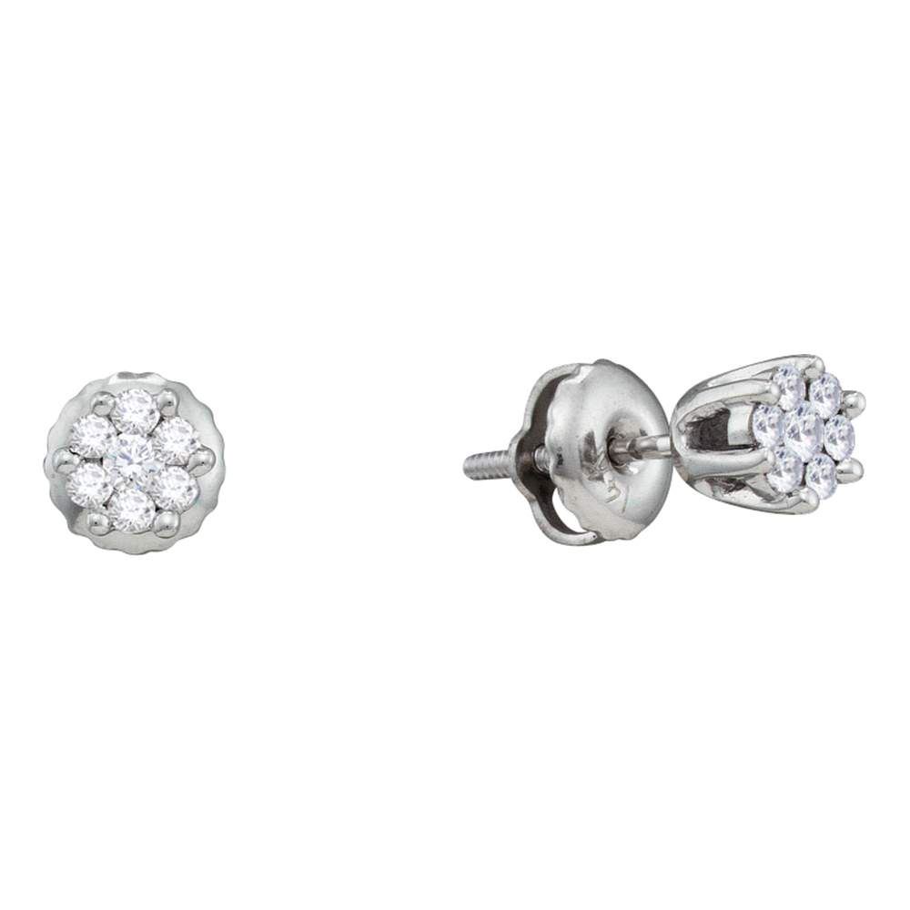 REF-19Y4X- SKU: GD53477 ---- 0.15 CTW Diamond Small Flower Cluster Screwback Earrings 14KT White Gold