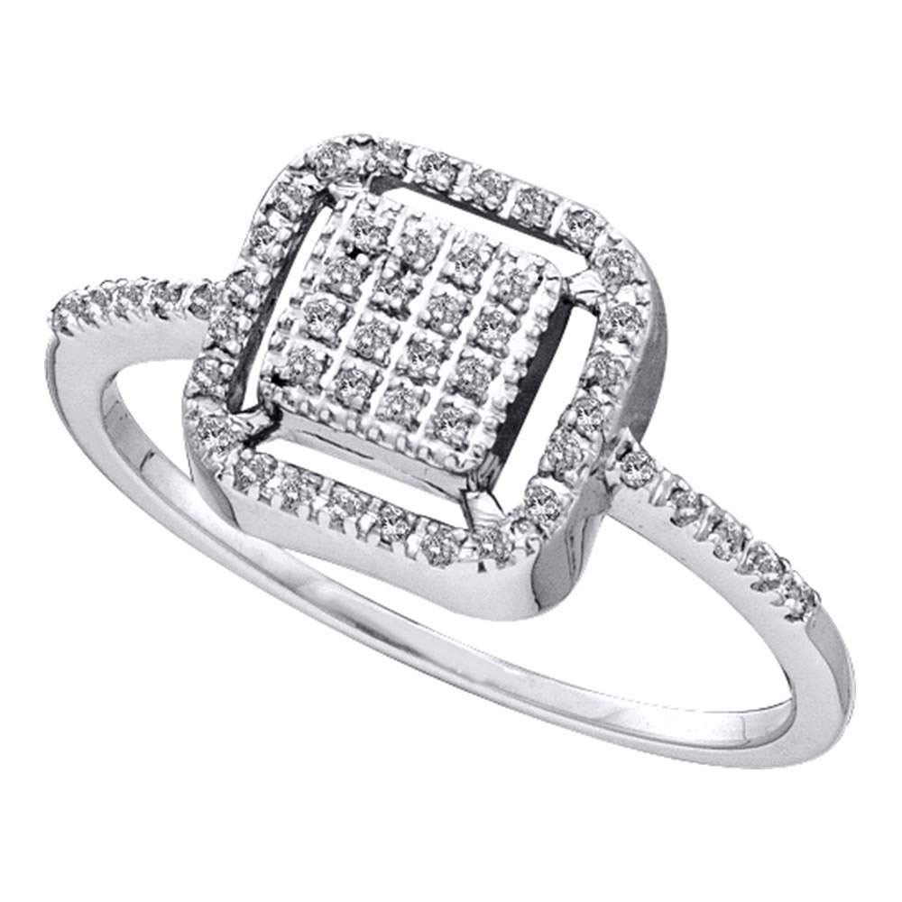 REF-19W4K- SKU: GD49615 ---- 0.15 CTW Diamond Square Cluster Slender Ring 14KT White Gold