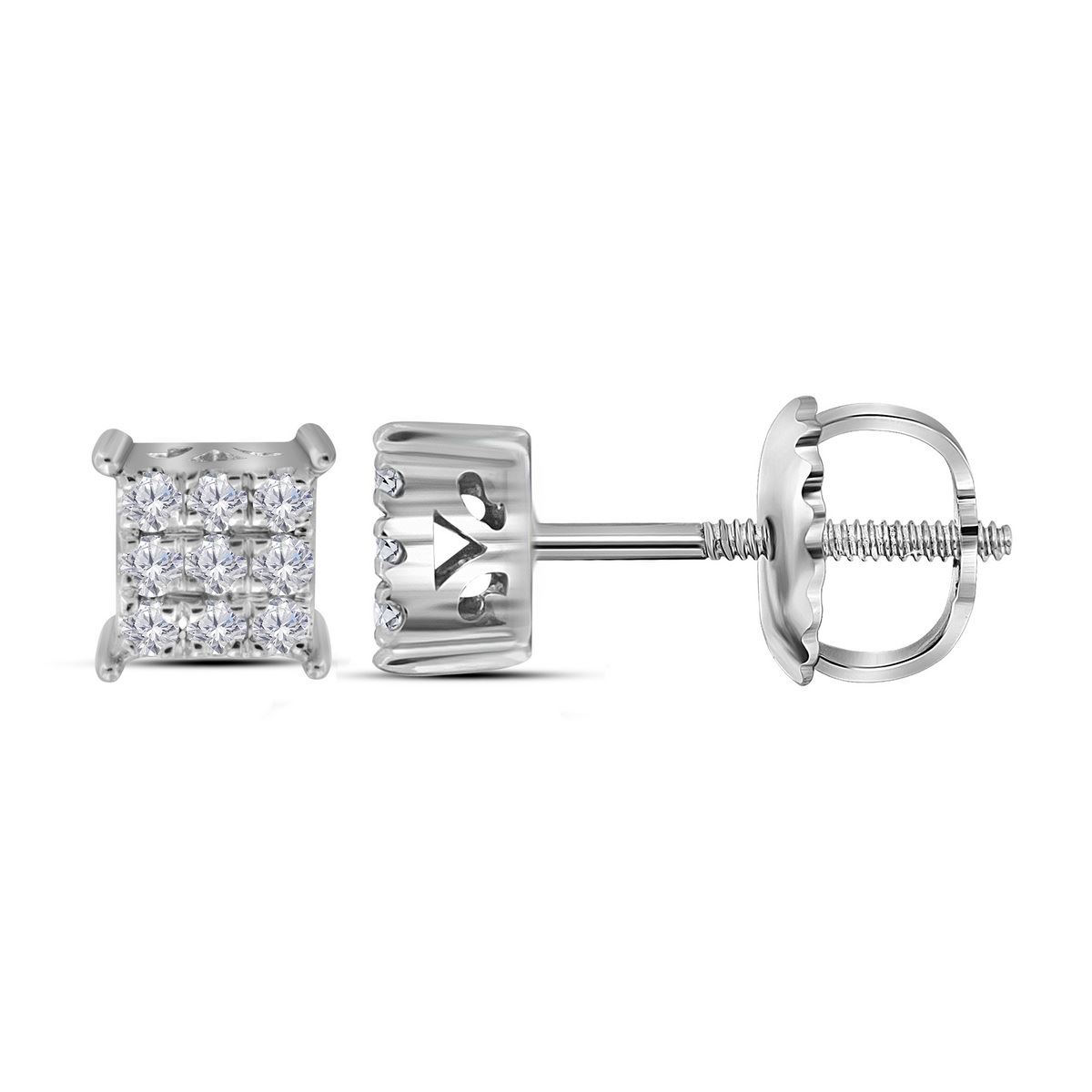 REF-13W4K- SKU: GD113146 ---- 0.15 CTW Diamond Square Cluster Stud Earrings 10KT White Gold