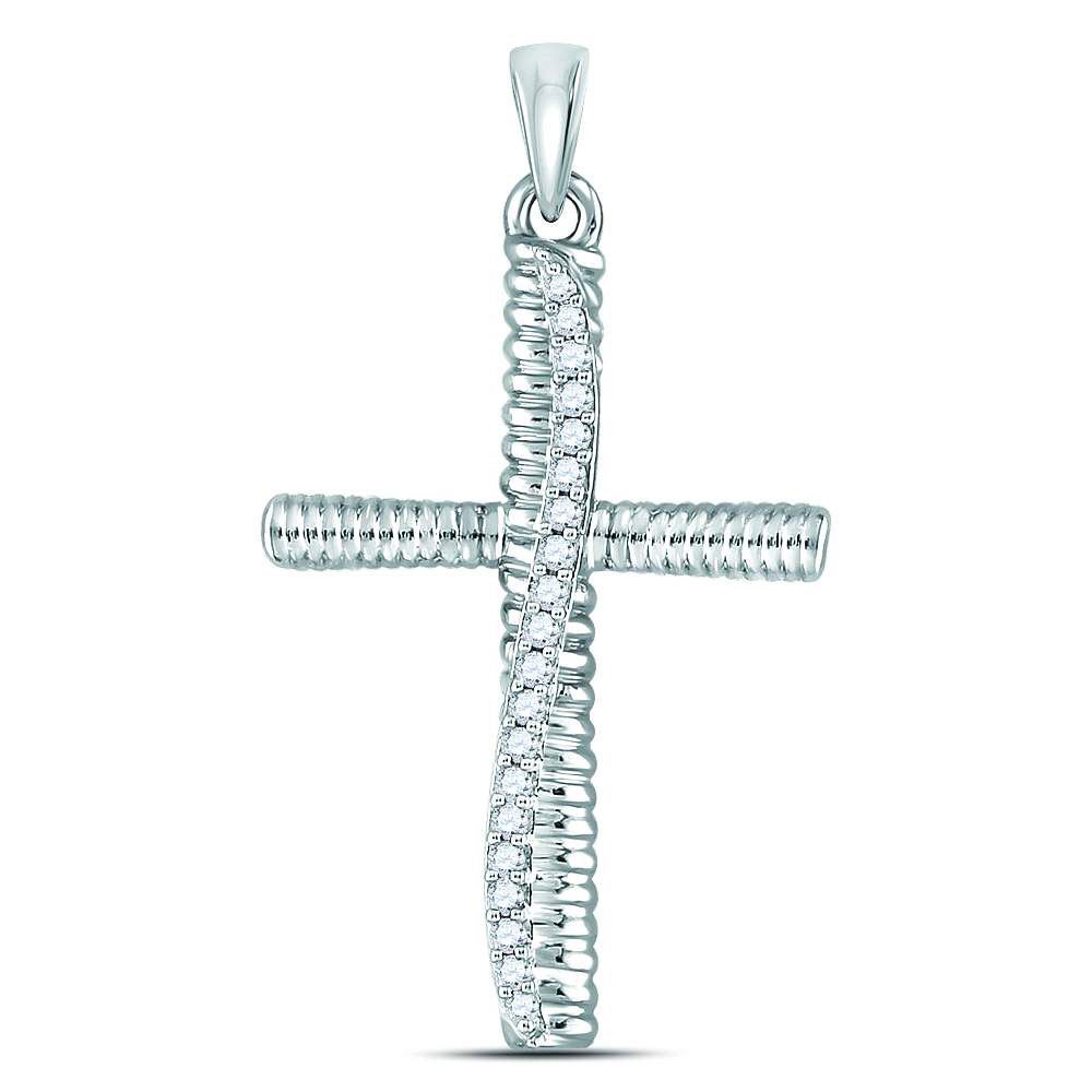 0.15 CTW Diamond Textured Cross Faith Pendant 10kt White Gold - SKU: GD118932