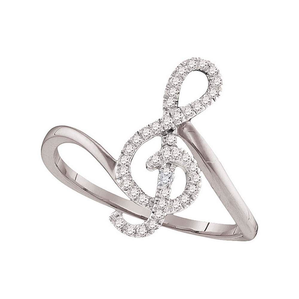 REF-14N9F- SKU: GD98123 ---- 0.15 CTW Diamond Treble Clef Music Note Classic Ring 10KT White Gold