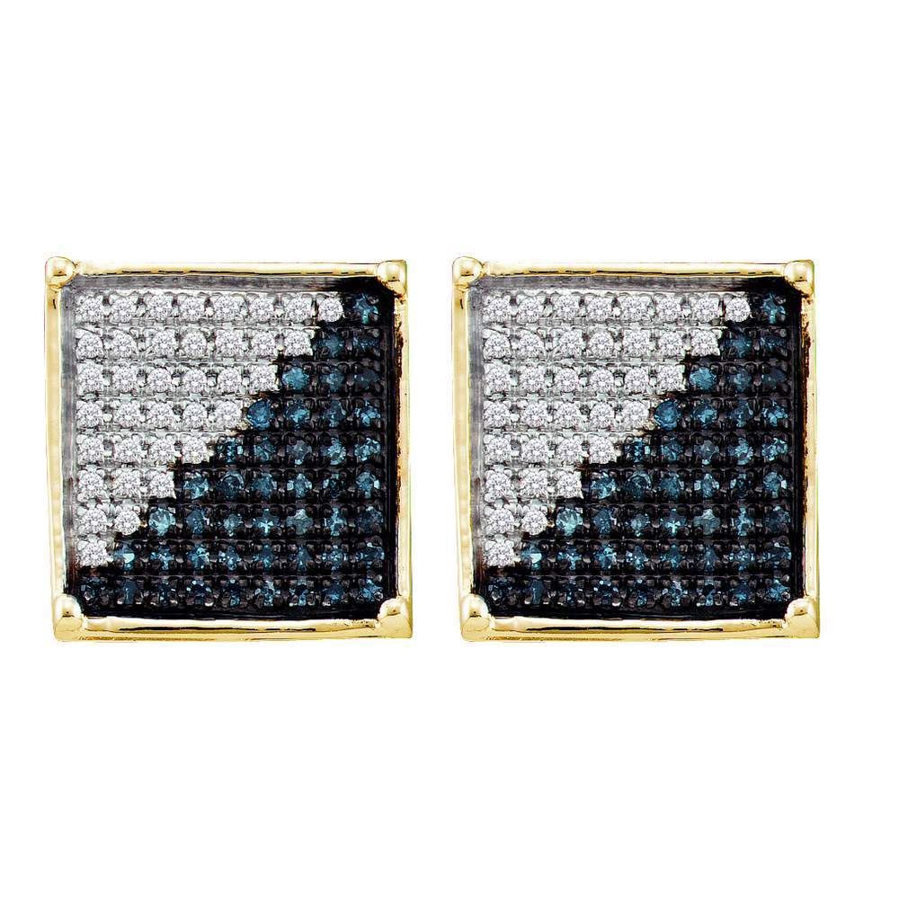 REF-12W2K- SKU: GD55068 ---- 0.15 CTW Mens Blue Color Diamond Square Cluster Earrings 10KT Yellow Gold