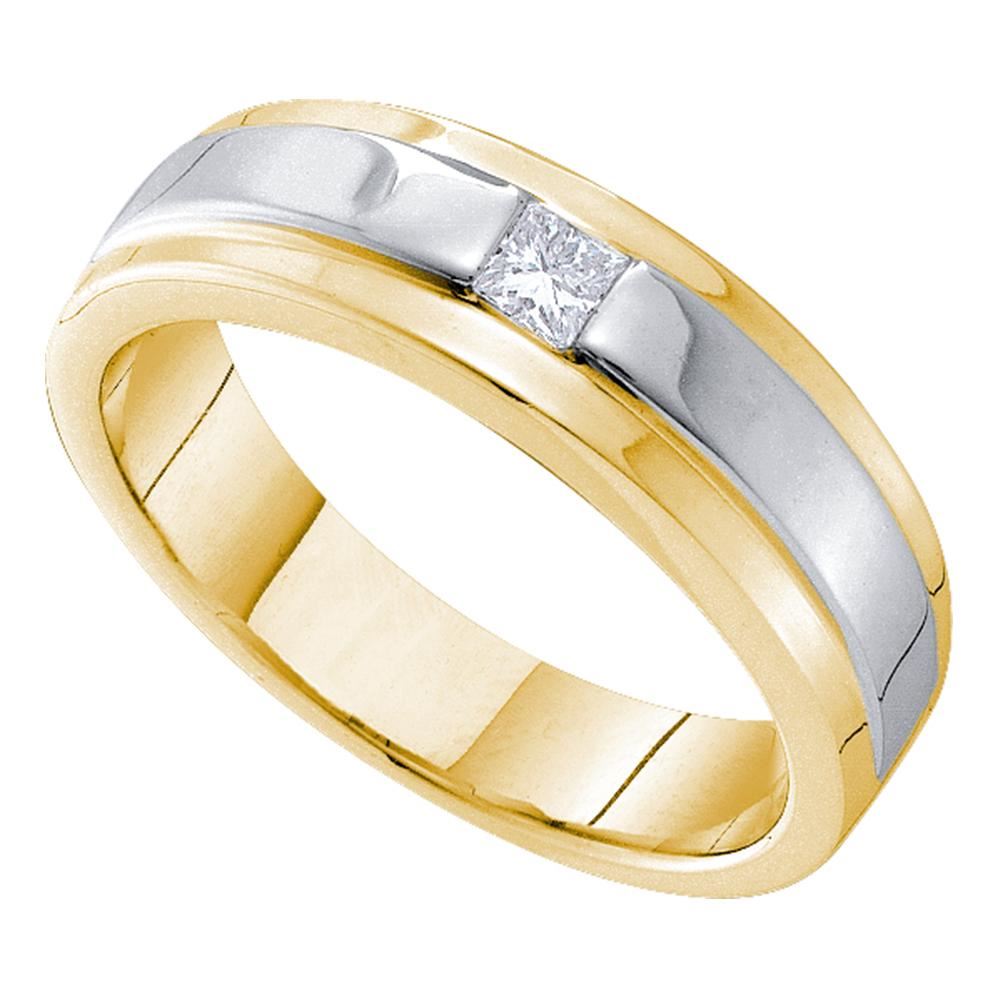 REF-94X5Y- SKU: GD22710 ---- 0.15 CTW Mens Princess Diamond Solitaire Two-tone Wedding Ring 14KT Yellow Gold