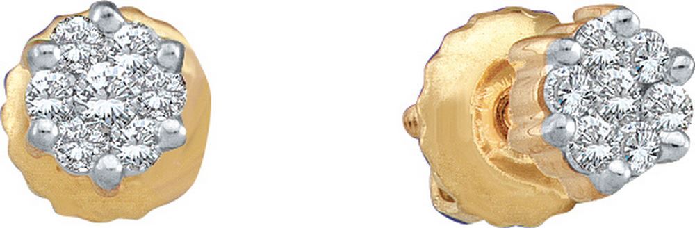 REF-17A9N ---- 0.15 CTW Natural Diamond Flower Cluster Screwback Stud Earrings 10K Yellow Gold - SKU: GD45819