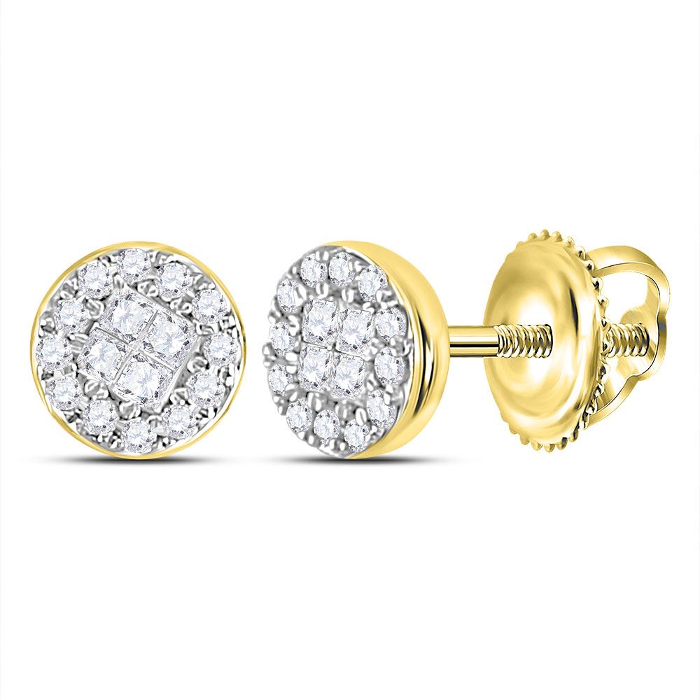 REF-18K7W- SKU: GD112169 ---- 0.15 CTW Princess Diamond Soleil Cluster Earrings 14KT Yellow Gold