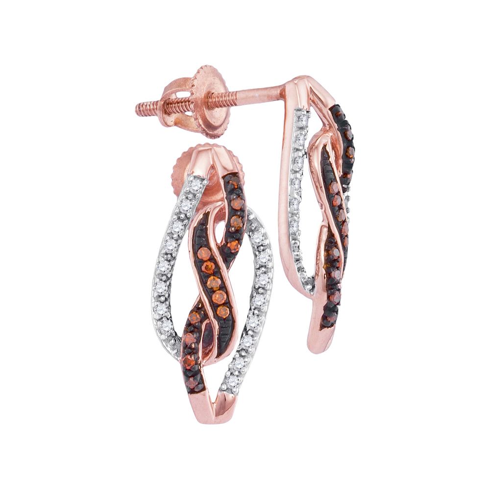 REF-19M4H- SKU: GD98468 ---- 0.15 CTW Red Color Diamond Infinity Screwback Earrings 10KT Rose Gold