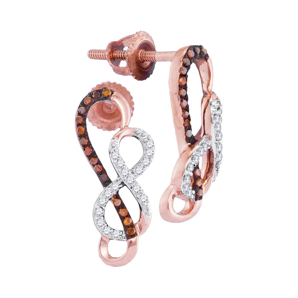 REF-20X9Y- SKU: GD98461 ---- 0.15 CTW Red Color Diamond Infinity Screwback Earrings 10KT Rose Gold