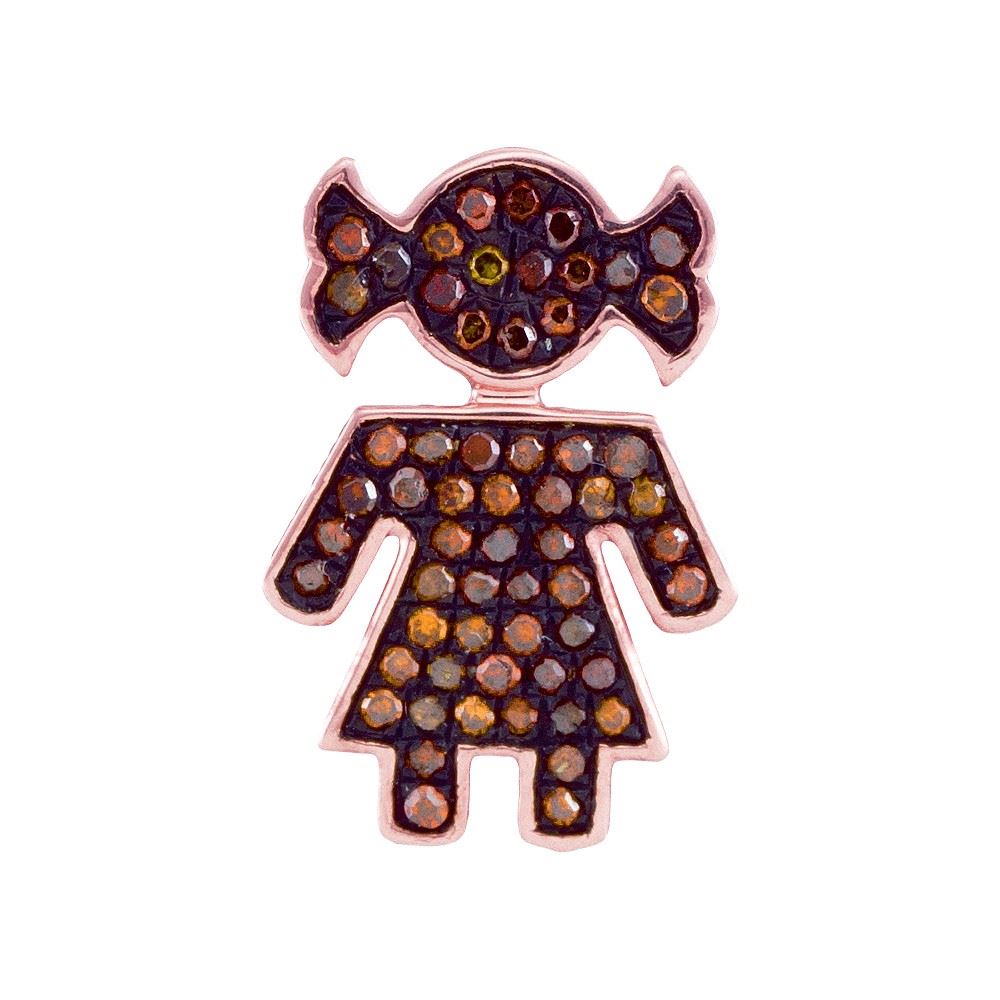 REF-16H4M- SKU: GD93590 ---- 0.15 CTW Red Color Diamond Mom Girl Daughter Pendant 10KT Rose Gold