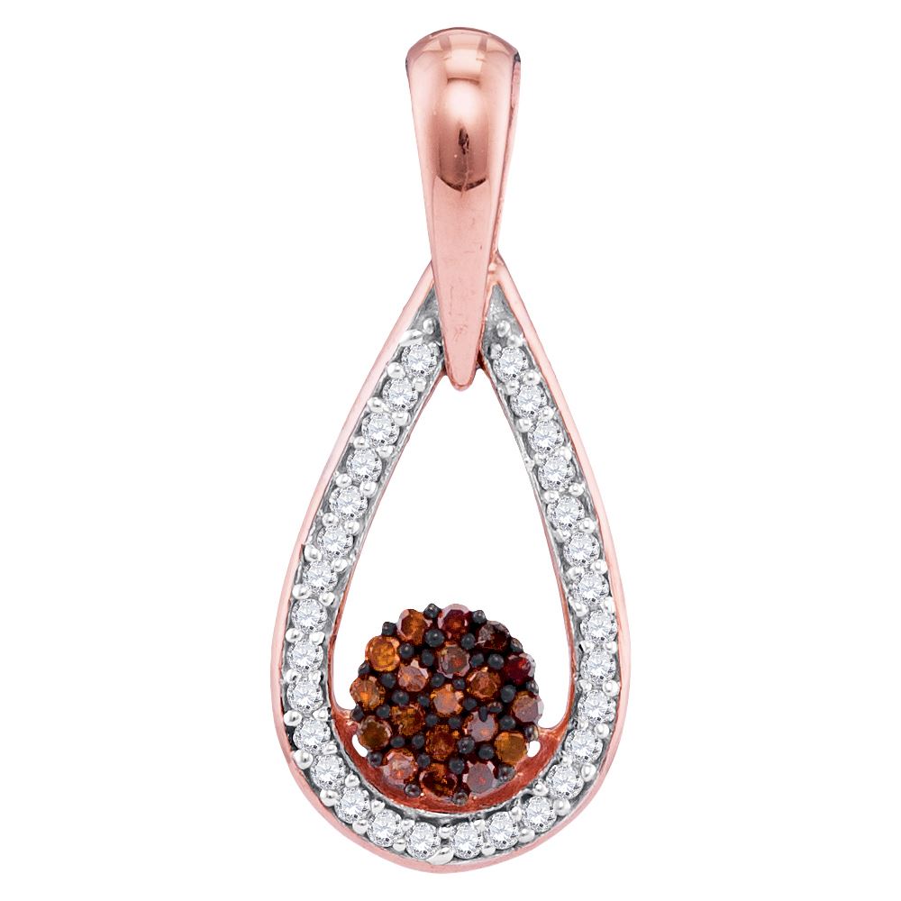 REF-14W9K- SKU: GD97591 ---- 0.15 CTW Red Color Diamond Teardrop Cluster Pendant 10KT Rose Gold